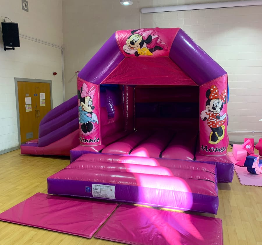 You've seen our minnie mouse bouncy castle, now check out this fantastic upgrade minnie mouse slide combo bouncy castle. Suitable for indoor and outdoor hires all year round throughout Gloucestershire and Worcestershire.